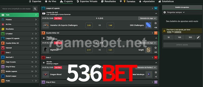 O 536bet oferece uma grande seleção de opções de apostas em e-sports com probabilidades competitivas